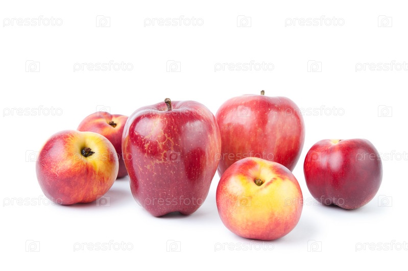 Свежие яблоки и нектарины, белый фон