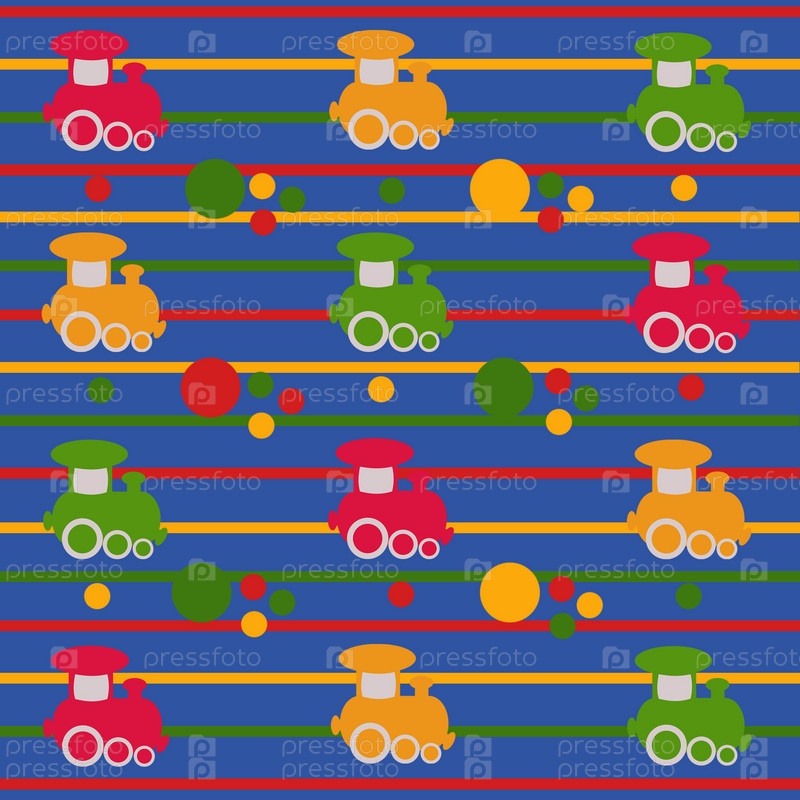 Яркий фон с разноцветными линиями, паровозиками и кругами