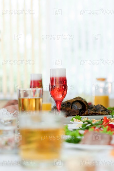 Бокал шампанского на праздничном столе