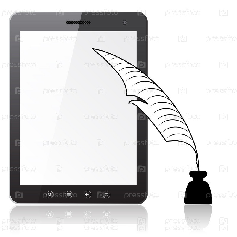 Планшетный компьютер с пером и чернилами, изолированный на белом фоне. Векторная иллюстрация