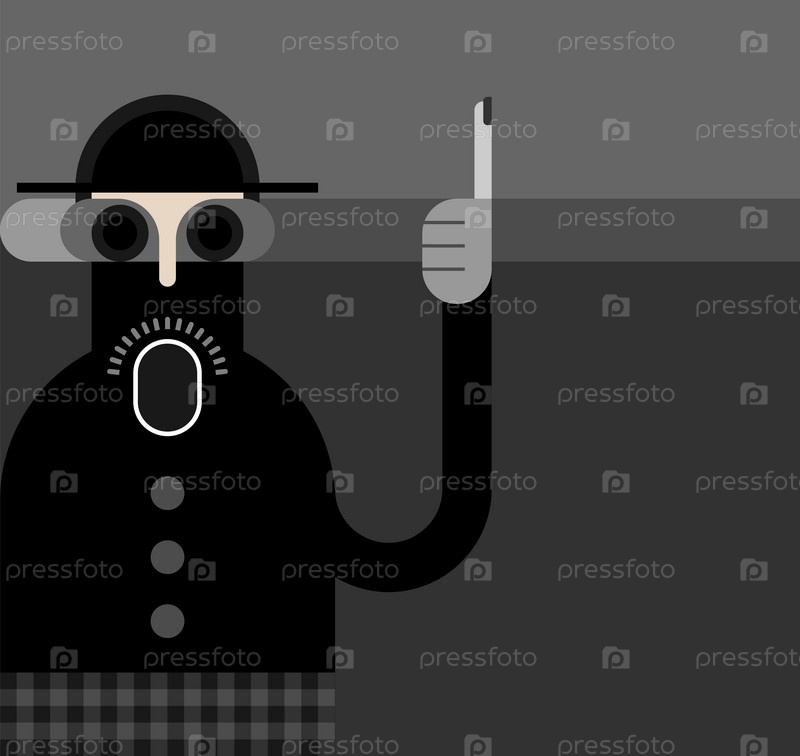Человек в шляпе и куртке поднял указательный палец вверх