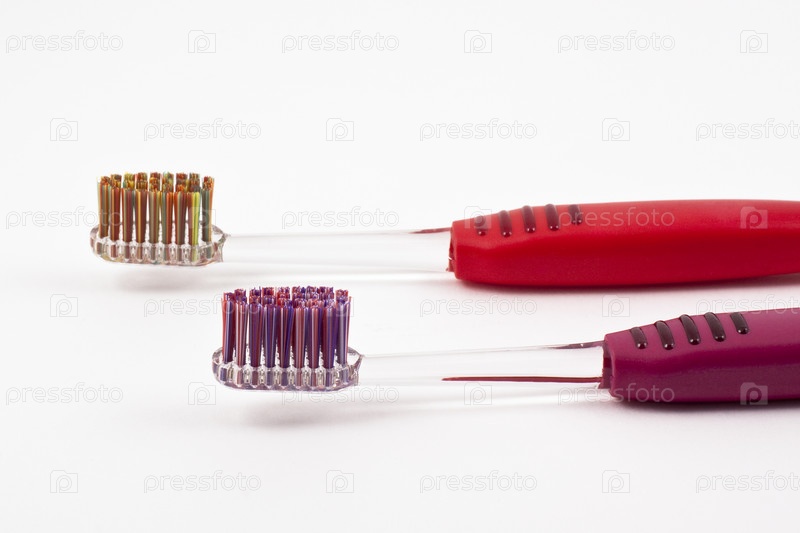 Две зубные щетки на белом фоне