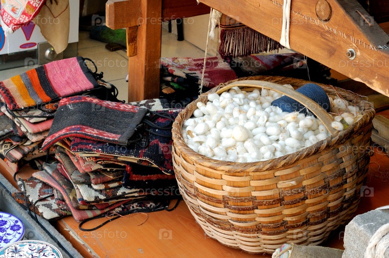 Шелковые коконы в старой корзине