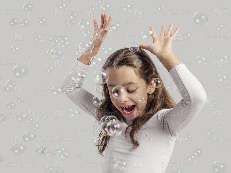 Девочка играет с мыльными пузырями