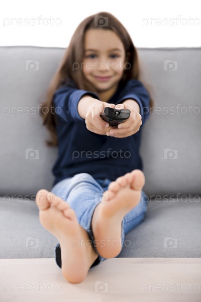 Девочка держит пульт от телевизора