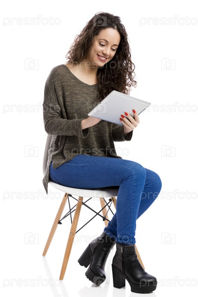 Женщина работает с планшетом
