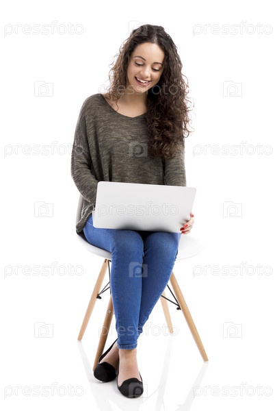 Женщина работает с ноутбуком