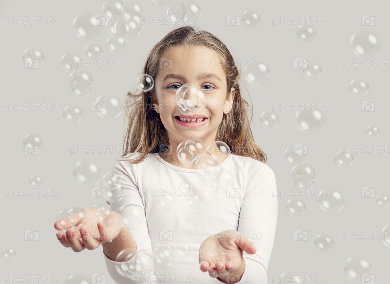 Девочка играет с мыльными пузырями