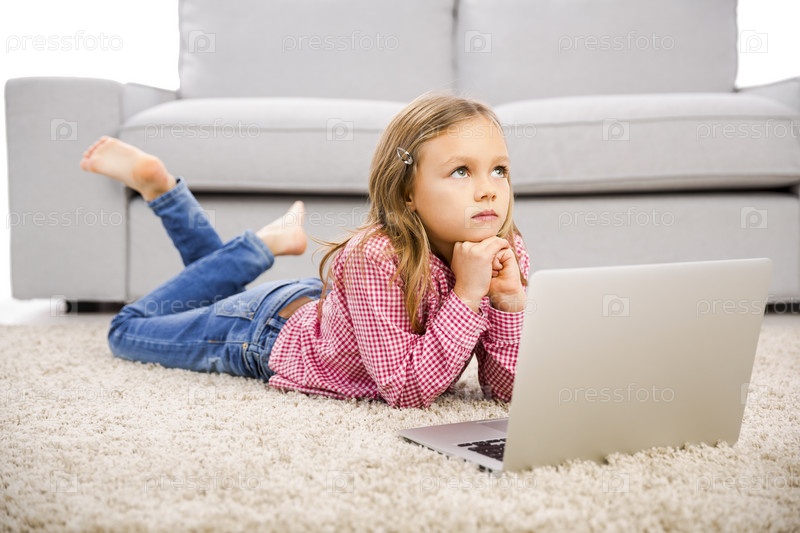 Маленькая девочка работает с ноутбуком