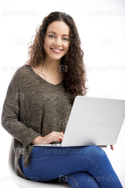 Женщина работает с ноутбуком