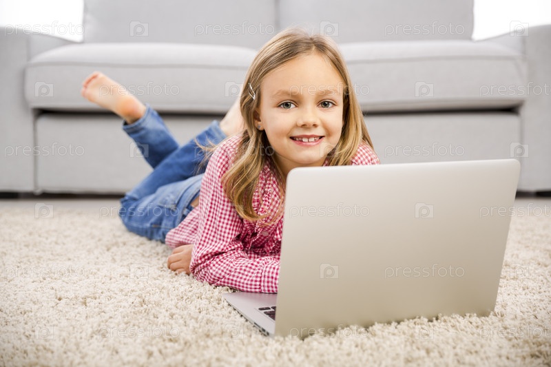 Маленькая девочка работает с ноутбуком