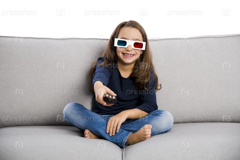 Девочка держит пульт от телевизора