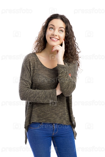 Красивая девушка думает