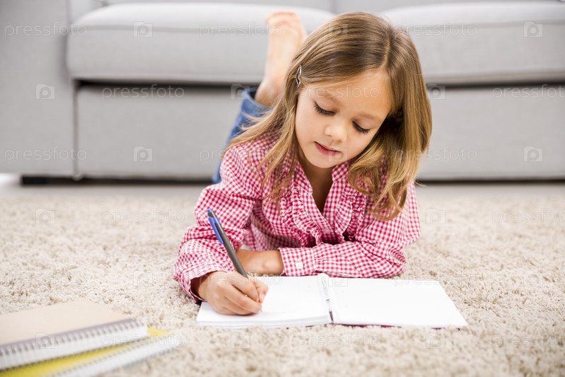 Маленькая девочка делает домашнее задание