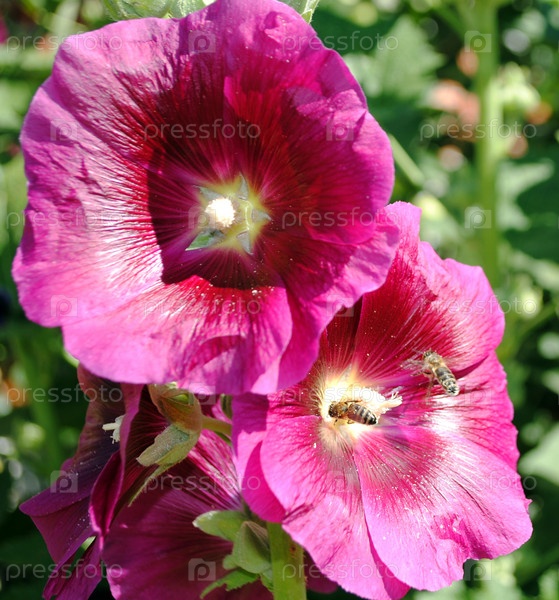 Пчелы опыляют цветок мальвы