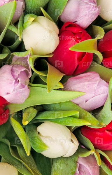 Красивый букет тюльпанов различных цветов