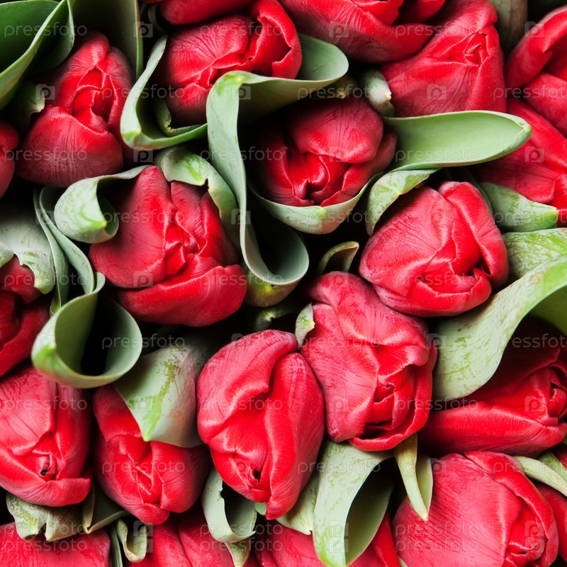 Красивые красные тюльпаны, большой букет