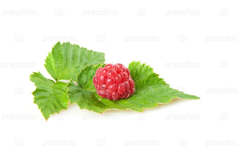 Малина с зелеными листьями