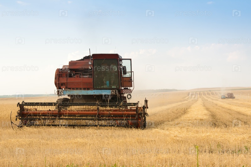 Зерноуборочный комбайн работает в поле