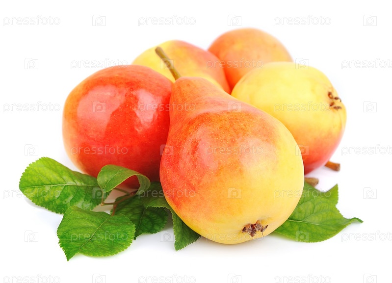 Спелые желтые груши на белом фоне