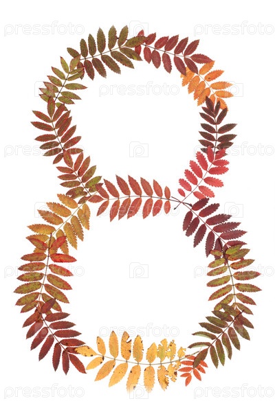Цифра 8 из листьев рябины