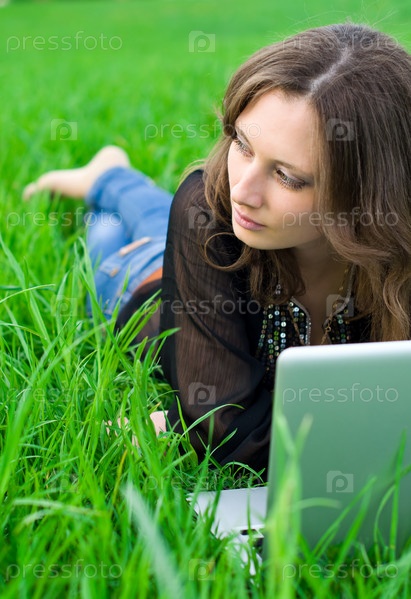 Девушка с ноутбуком на природе