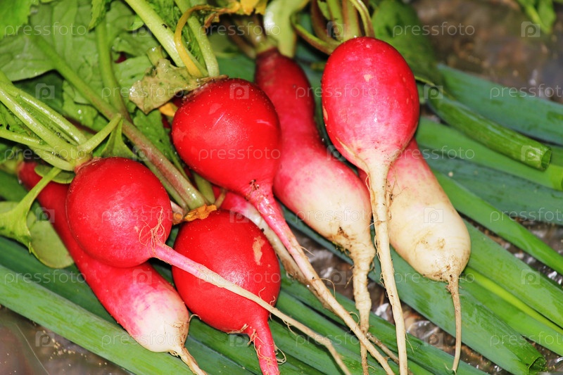 Свежий редис и лук