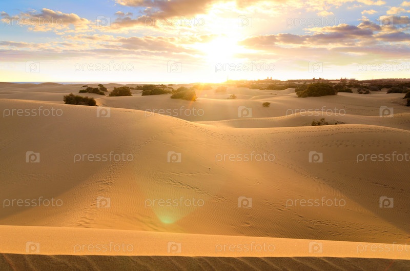 Закат в пустыне вблизи Маспаломасе, Гран-Канария, Испания