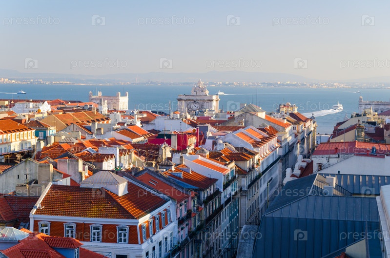 Вид города Лиссабон из лифта Ди-Санта-Жушта, Португалия