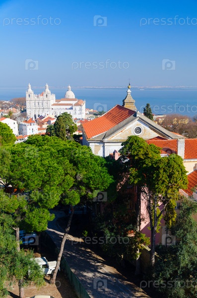 Вид города Лиссабон с Каштелу-де-Сан-Хорхе, Португалия