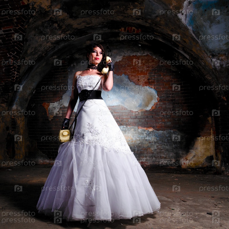 Молодая женщина в свадебном платье в заброшенном месте
