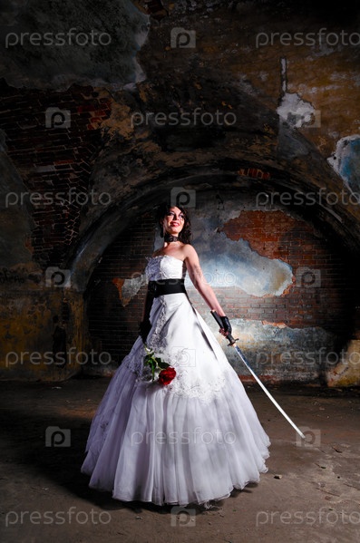 Молодая женщина в свадебном платье в заброшенном месте