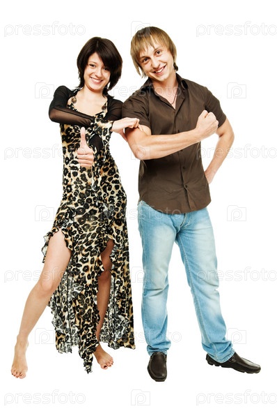 Девушка в платье с парнем на белом фоне