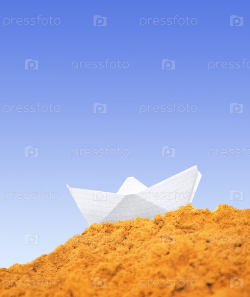 Бумажный кораблик на песке
