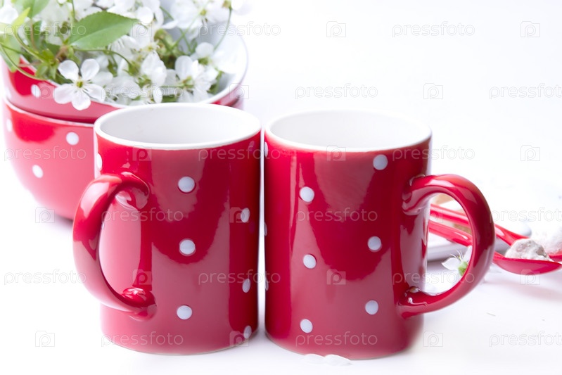 Красная посуда на белом фоне