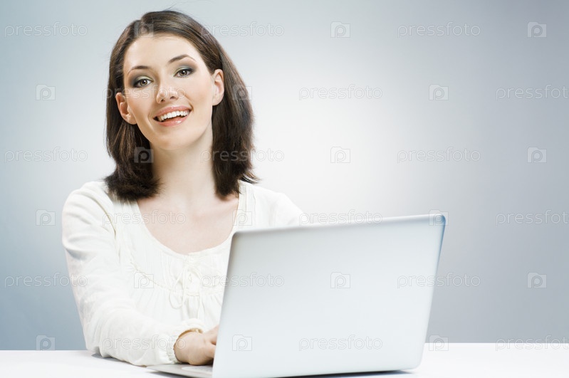 Молодая женщина, работающая за ноутбуком