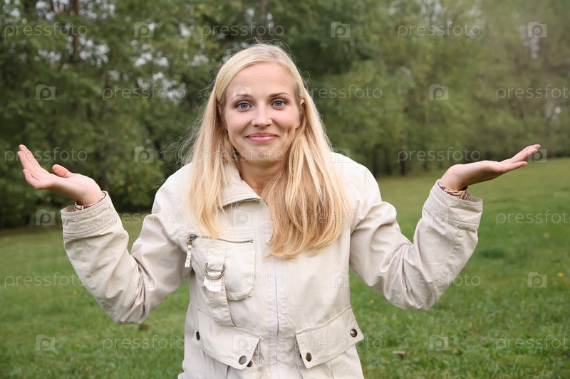 Красивая женщина в недоумении разводит руки