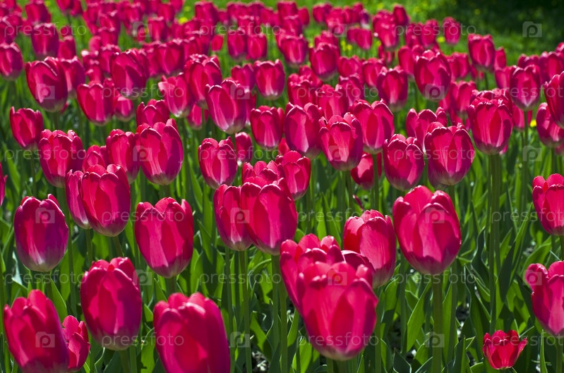 Поляна розовых тюльпанов в контровом свете