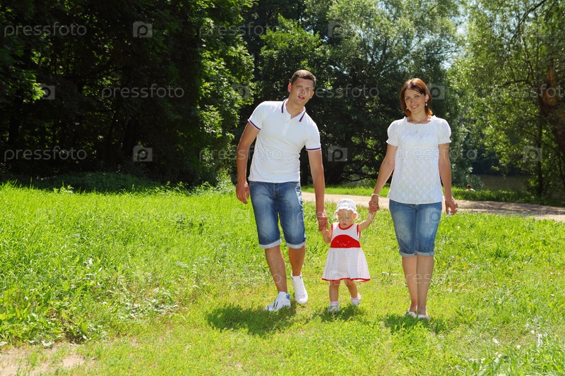 Счастливая семья гуляет на природе