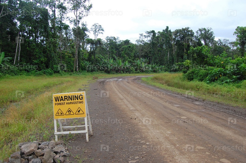 Знак на дороге в малонаселеннои районе Папуа-Новой Гвинеи