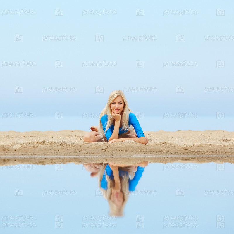 Портрет красивой белокурой гимнастки на пляже