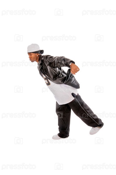Молодой танцор хип-хопа на белом фоне