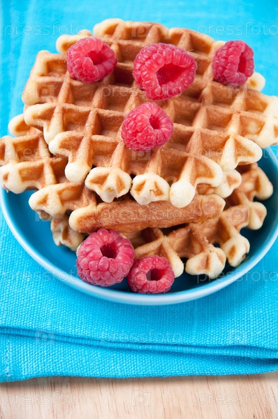 Крупным планом вафли с малиной
