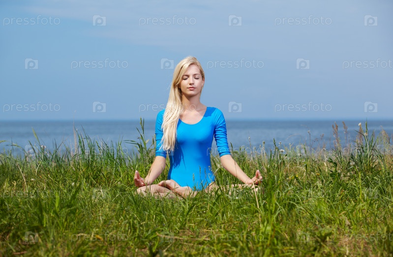 Молодая красивая гимнастка медитирует в позе лотоса