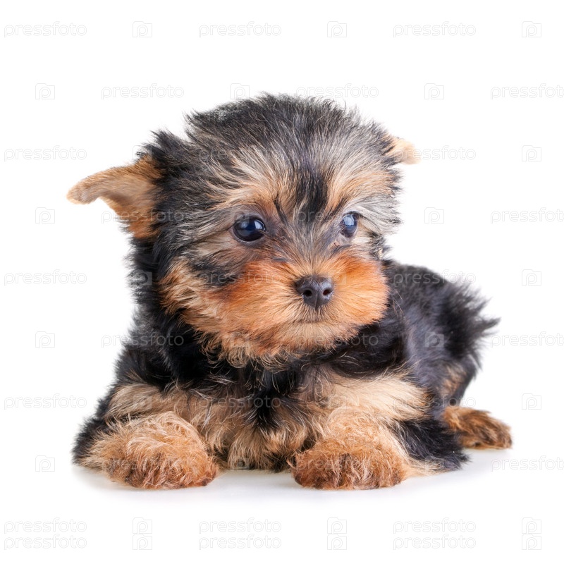 Маленький щенок йоркширского терьера на белом фоне