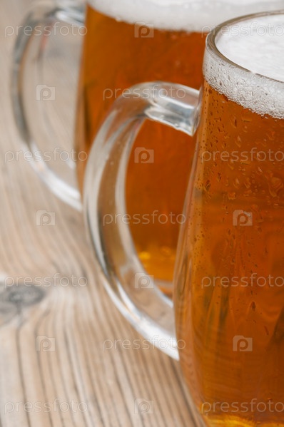 Два бокала пива на старом деревянном столе