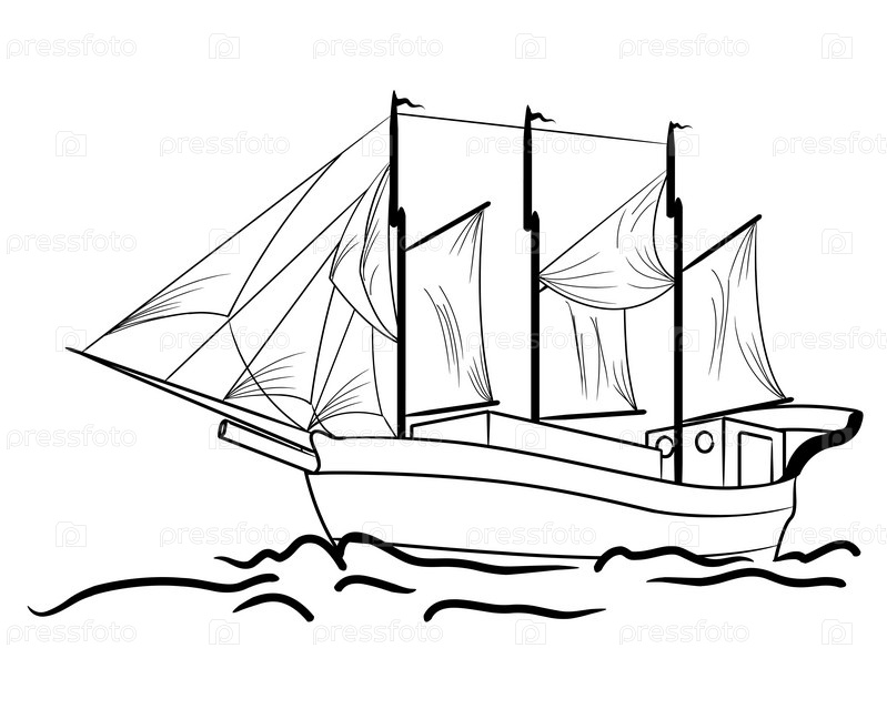 Эскиз морского парусного судна в море