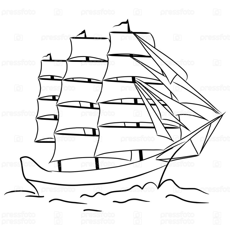 Эскиз морского парусного судна в море