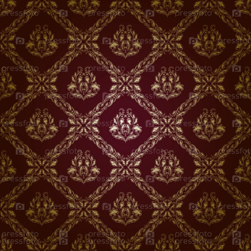 Бесшовный цветочный узор с золотыми цветами на коричневом фоне. EPS 10