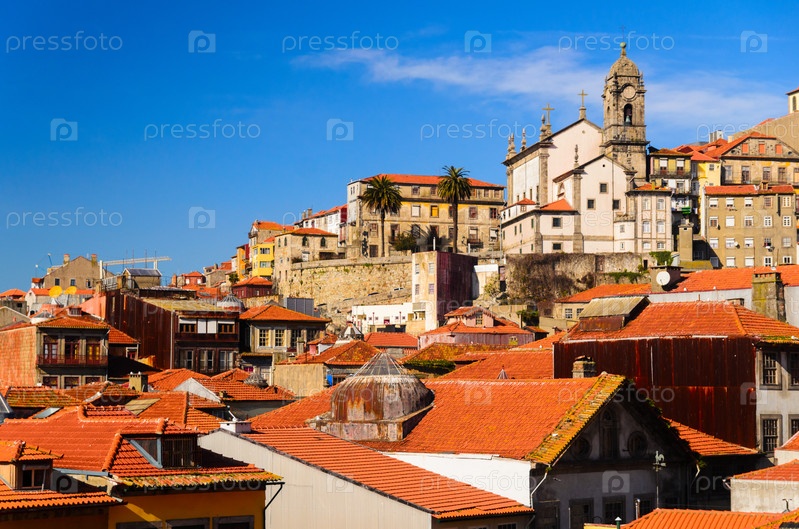 Крыши города и башня церкви Святого Франциска, Порту, Португалия